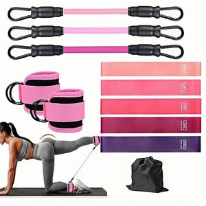 银钩脚踝扣套装+拉力圈粉色系含力量标(三根绳+脚扣一对+布袋)-粉色