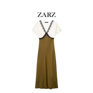 ZARZ 自制 欧美风 新款女装 撞色花边丝缎质感迷笛连衣裙1165/177