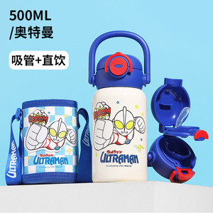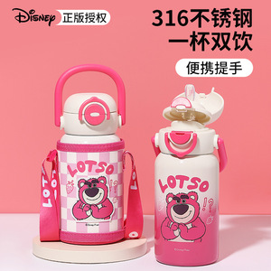 草莓熊水杯儿童保温杯男孩双饮杯2025学生上学专用水壶316食品级