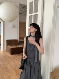 DIAMOND◆北欧博主 自制纯棉圆领休闲度假风无袖吊带背心连衣裙