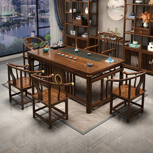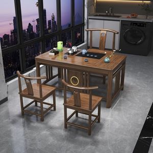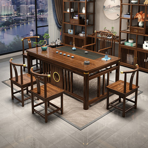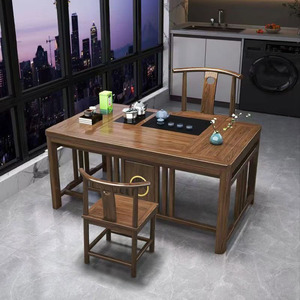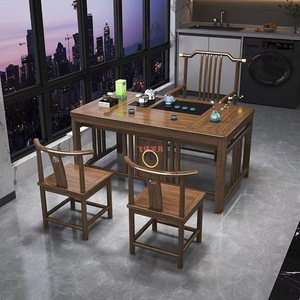 新中式阳台茶桌椅组合实木泡茶桌小户型茶桌一体一整套禅意喝茶桌