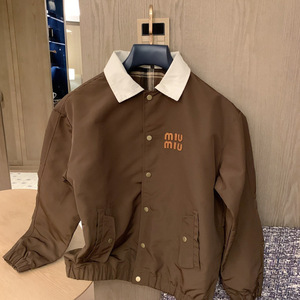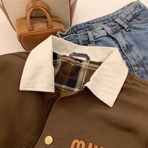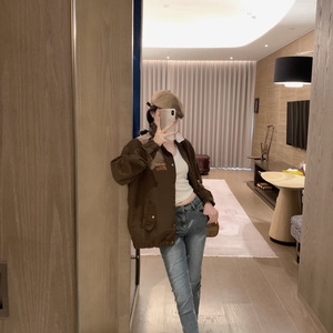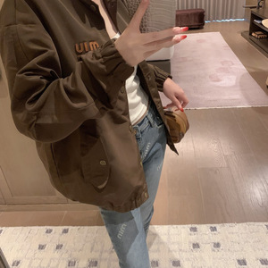 mi u咖色夹克外套立体皮标字母装饰女25早秋8月新品复古时髦外套