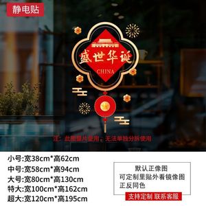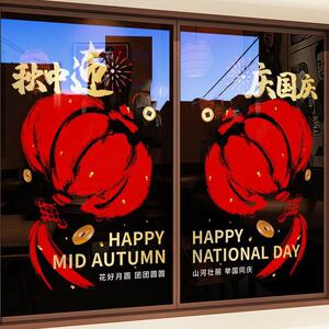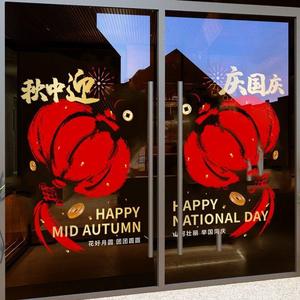 十一中秋国庆装饰贴纸商场橱窗布置静电玻璃贴节日场景氛围贴画