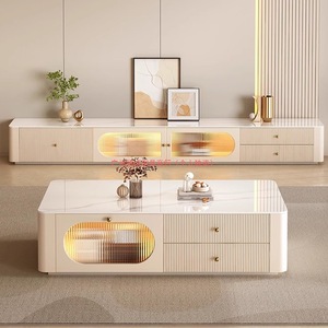 家用奶油茶几电视柜客厅简约现代简约现代白色小户型新款组合