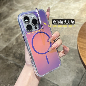 适用于iPhone17promax镭射变色龙磁吸手机壳苹果16镜头支架保护套