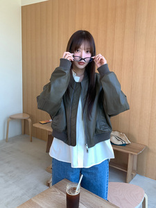 木兰 复古Polo领皮衣夹克2025十三行秋季新款百搭宽松外套女57032