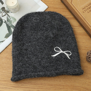 帽子女秋冬可爱蝴蝶结刺绣毛线帽加绒防寒保暖帽休闲百搭抽绳冷帽