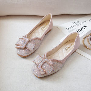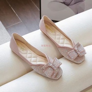 网红单鞋女方头韩版平底瓢鞋女2025春秋新款软底百搭小香风豆豆鞋