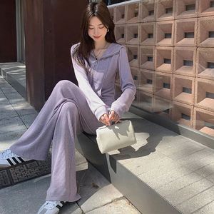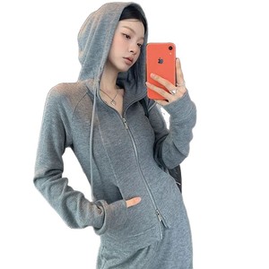 韩版春秋季新款休闲运动套装纯色连帽甜酷风开衫长袖卫衣两件套潮