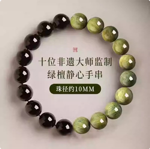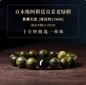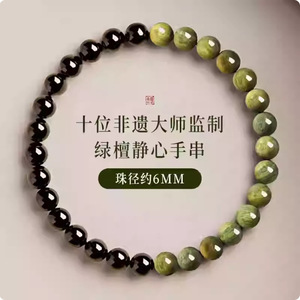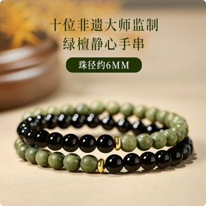 天然绿檀木双圈手串男女款黑曜石檀香木质佛念珠复古盘玩手链礼物