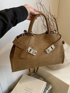跨境美拉德托特包包女2025秋冬新款大容量高级感麂皮绒单肩斜挎包
