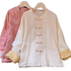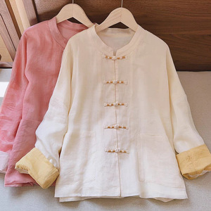 现货秋季新款复古新中式文艺大码宽松棉麻盘扣扣开衫外套禅意茶服