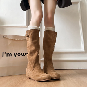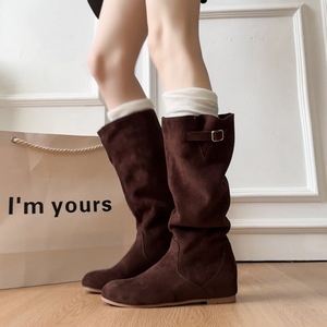 内增高3cm复古堆堆靴长筒靴女靴2025年新款西部牛仔靴瘦瘦靴子