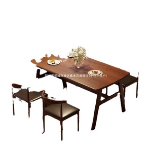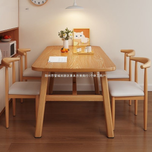 【加厚】餐桌快餐店长方形餐桌椅组合家用商用简约原木色吃饭桌子