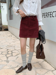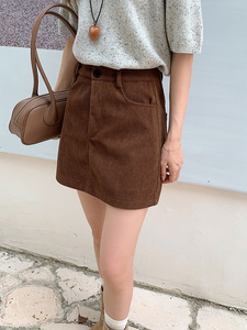 【秋季新品】灯芯绒工装短裙女秋冬复古拉链包臀百搭半身裙子女装
