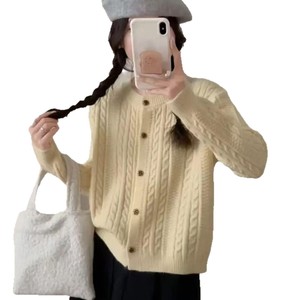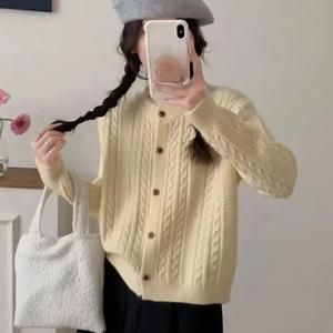 韩系复古麻花软糯毛衣外套女秋冬新款圆领宽松慵懒风显瘦针织开衫