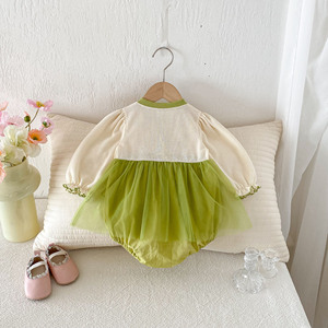 2025婴儿衣服秋季女宝宝连体衣公主裙子满月周岁礼服新生儿包屁衣