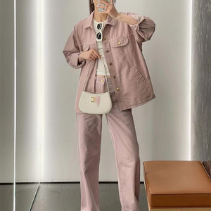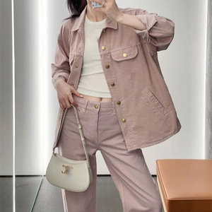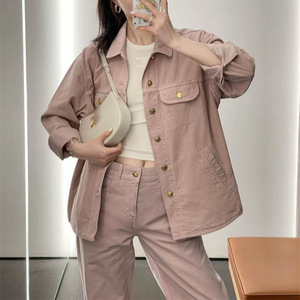 25秋季新款南油高定Ce简约休闲经典藕粉色复古口袋翻领长袖外套