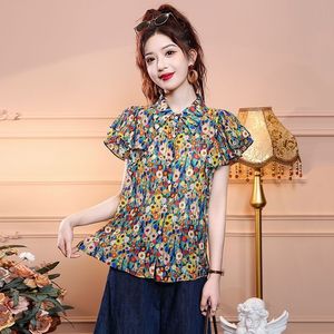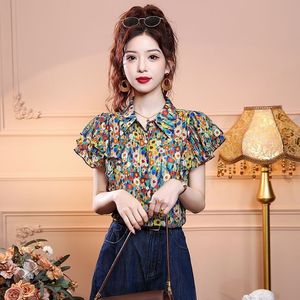 2025设计感小众法式荷叶边无袖坎肩雪纺上衣夏天气质碎花衬衫