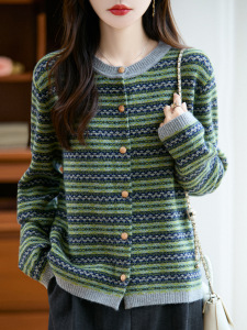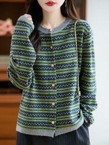 25秋冬新款浣熊绒面羊毛衫圆领条纹针织衫上衣外搭时尚休闲打底衫