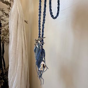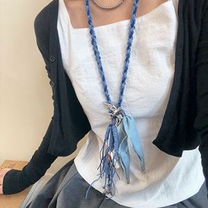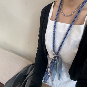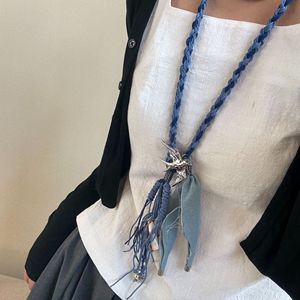 度假系列手工项链小飞鸟吊坠蓝色编绳牛仔布流苏长项坠项链配饰女