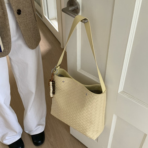 大容量斜挎编织纹水桶包女士2025早秋新款高级感通勤腋下包托特包