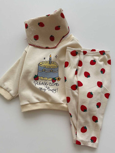 25秋款小童裤子ins草莓印花儿童空调裤韩版中小童高弹打底裤长裤