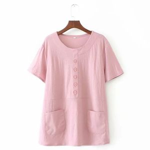 中老年女装加大码胖妈妈夏装短袖T恤女妈妈中年宽松遮肚藏肉上衣