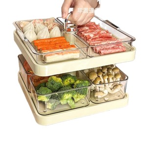 置物架三层家用多功能盘神器备厨房火锅分格配菜菜盘旋转托盘拼盘