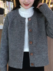 韩版宽松显瘦软糯针织开衫女秋冬新款单排扣纯色简约毛衣上衣外套