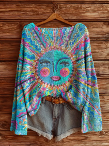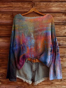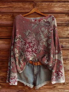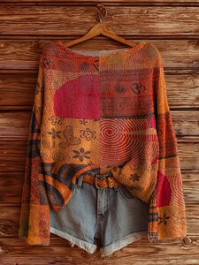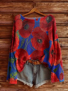 独立站TEMU跨境外贸欧美女装亚马逊花纹底纹印花女装圆领仿毛衣
