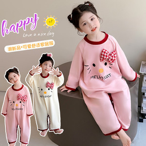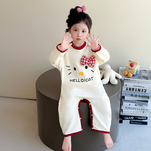 儿童睡袋2025新款春秋款女宝宝家居服儿童休闲连体睡衣棉空调服