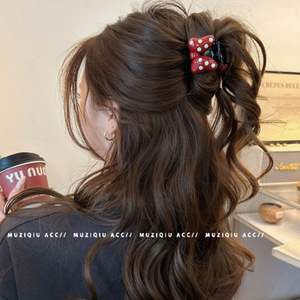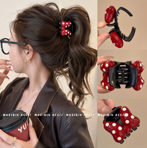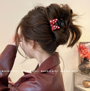 韩版气质红色波点蝴蝶结盘发小抓夹高级感时髦精致优雅发夹
