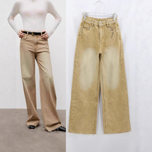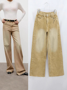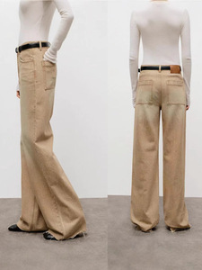 ED直筒牛仔裤女棕咖色美拉德高腰宽松百搭毛边长裤女2025秋冬新款