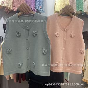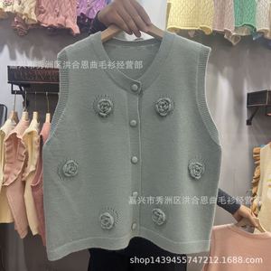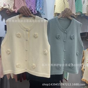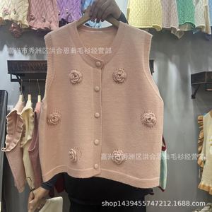 秋季新款森系文艺复古圆领立体花朵针织开衫马甲女百搭叠穿背心