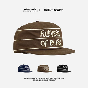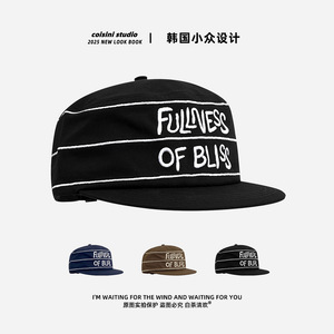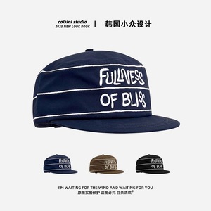 韩国小众设计师款棒球帽子女平檐刺绣字母海军蓝色水手帽鸭舌帽潮