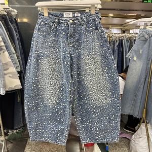 FSY秋季新款25女士牛仔裤重工满天星烫钻直筒裤时尚宽松显瘦长裤