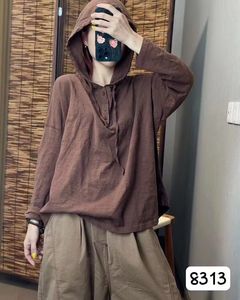 秋季新品复古连帽纯棉长袖T恤女宽松休闲内搭文艺气质卫衣