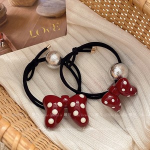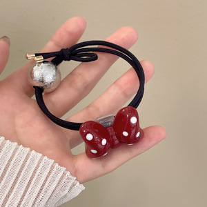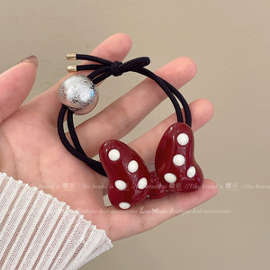 红色波点蝴蝶结发圈女高级感头绳耐用弹力大发绳时尚扎头发皮筋