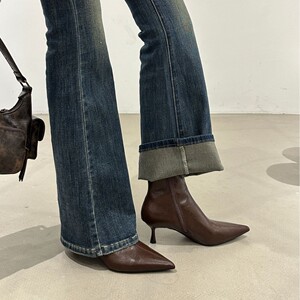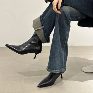 尖头短靴女新款2025秋冬女靴细跟靴子套筒瘦瘦靴小众高跟鞋马丁靴