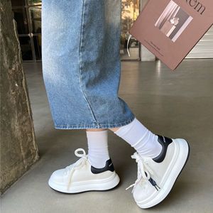 厚底小白鞋女2025秋季新款真皮松糕显脚小百搭增高板鞋