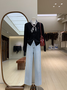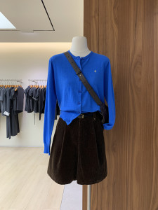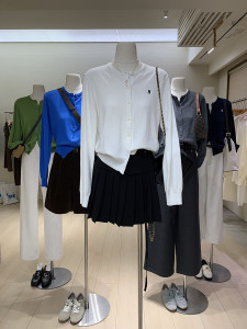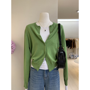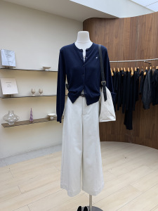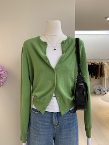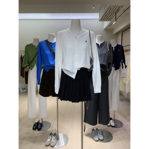 6色丝光羊毛精致小马刺绣针织开衫女早秋新款单排扣圆领长袖上衣