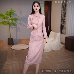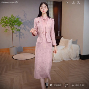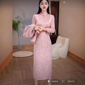 高级浮雕缎高端气质轻奢阔太减龄套装2025秋季新款上衣裙子俩件套