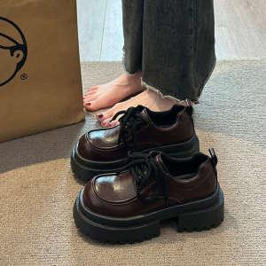 厚底百搭乐福鞋英伦学院风复古单鞋女2025春季新款大头系带小皮鞋
