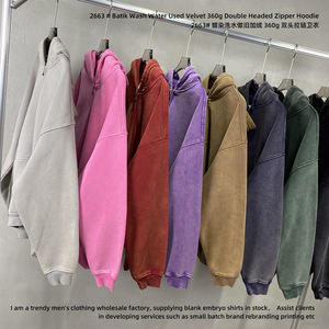 美式复古防风无磨边蜡染洗水做旧加绒保暖双头拉链开衫外套卫衣
