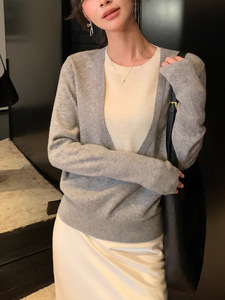 Maven Ljn 设计感假两件大U领含羊毛显瘦针织衫女春秋宽松毛衣