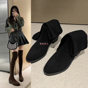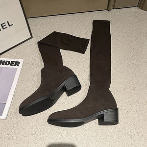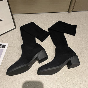 弹力袜子靴女2025春秋款百搭长筒连袜过膝靴女粗跟尖头瘦瘦靴大码