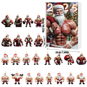 跨境圣诞来临倒计时盲盒 趣味健美圣诞老人挂件节日圣诞树装饰品