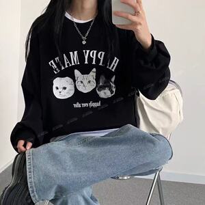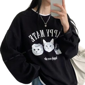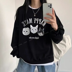 美式复古黑色无帽卫衣女2025新款爆款秋冬款加绒古着vintage外套