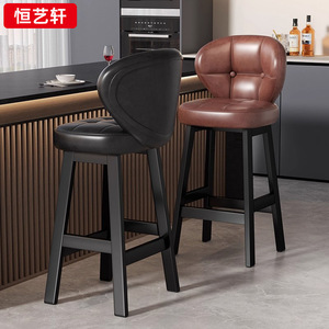 恒艺轩家用铁艺高脚凳子酒吧收银椅现代简约靠背椅可旋转吧台椅子
